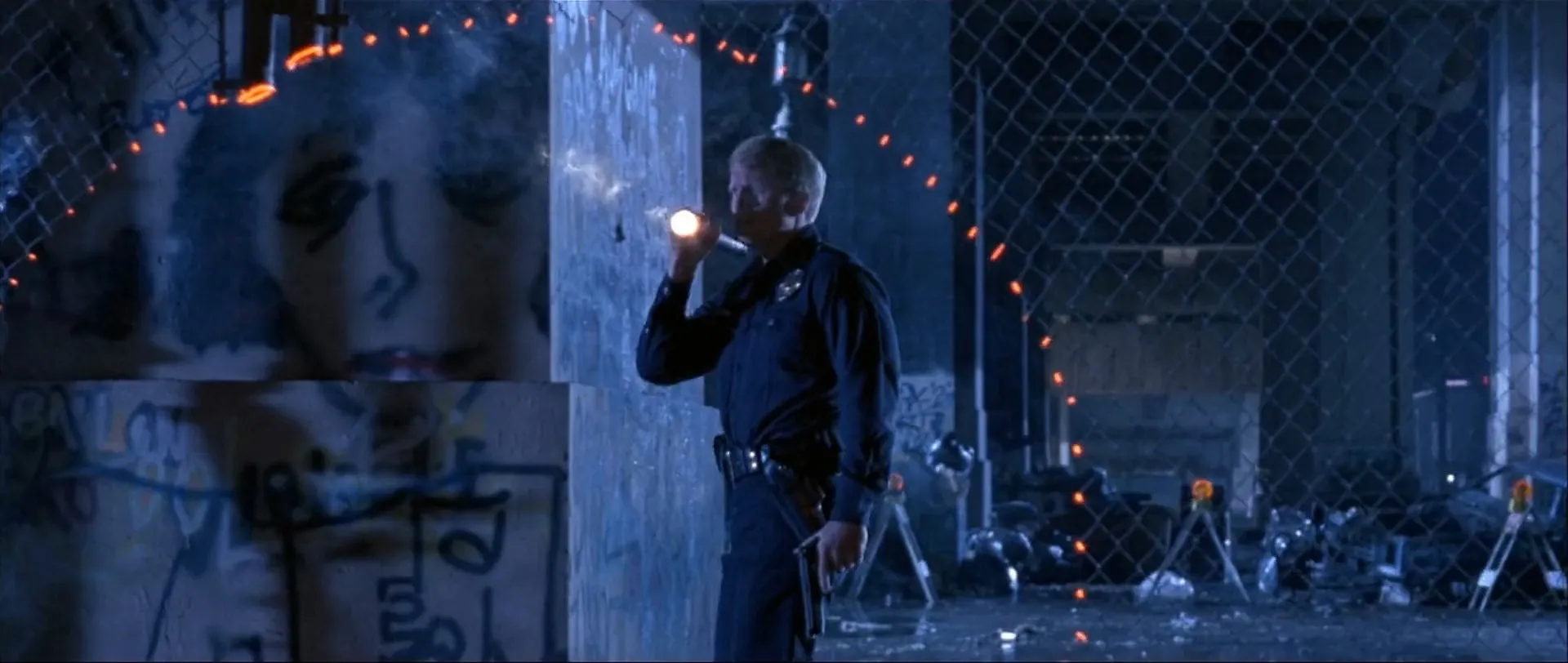 Cast: Arnold Schwarzenegger as The Terminator, Linda Hamilton as Sarah Connor, Edward Furlong as John Connor, Robert Patrick as T-1000, Joe Morton as Dr. Miles Bennett Dyson, Earl Boen as Dr. Peter Silberman, S. Epatha Merkerson as Tarissa Dyson, Castulo Guerra as Enrique Salceda, Danny Cooksey as Tim, Jenette Goldstein as Janelle Voight, Xander Berkeley as Todd Voight, Leslie Hamilton Gearren as Twin Sarah, Ken Gibbel as Douglas, Robert Winley as Cigar Biker, Pete Schrum as Lloyd, Shane Wilder as Trucker, Michael Edwards as Old John Connor, Jared Lounsbery as Kid, Casey Chavez as Kid, Ennalls Berl as Bryant, Don Lake as Mossberg, Richard Vidan as Weatherby, Tom McDonald as Cop, Jim Palmer as Jock, Gus Williams as Jock, Gwenda Deacon as Night Nurse, Don Stanton as Lewis the Guard, Dan Stanton as Lewis as T-1000, Colin Patrick Lynch as Attendant, Noel Evangelisti as Hospital Guard, Nikki Cox as Girl, Lisa Brinegar as Girl, DeVaughn Nixon as Danny Dyson, Tony Simotes as Vault Guard, Diane Rodriguez as Jolanda Salceda, Dalton Abbott as Infant John Connor, Ron Young as Pool Cue Biker, Charles Robert Brown as Tattoo Biker, Abdul Salaam El Razzac as Gibbons, Mike Muscat as Moshier, Dean Norris as SWAT Team Leader, Charles A. Tamburro as Police Chopper Pilot, J. Rob Jordan as Pickup Truck Driver, Terrence Evans as Tanker Truck Driver, Denney Pierce as Burly Attendant, Mark Christopher Lawrence as Burly Attendant, Pat Kouri as SWAT Leader, Van Ling as Cyberdyne Tech, Martin DeLuca as Cyberdyne Tech (uncredited), Joel Kramer as Male Nurse (uncredited), Richard Ruskin as Frisbee Player (uncredited), Scott Shaw as Cyberdyne Tech (uncredited), Sven-Ole Thorsen as Mall Security Guard (uncredited), Randy Walker as SWAT Officer (uncredited), William Wisher as Galleria Photographer / Cop (uncredited), Dalton Hamilton as Baby John Connor (uncredited), Nancy Fish as Roadside Window Woman (Special Edition Restoration) (uncredited), Mic Rodgers as Policeman (uncredited), Gus Williams as Jock 2, Michael Albanese as SWAT Officer (uncredited), Ed Arneson as SWAT Officer (uncredited), Debra Casey as Mohawk Girl at Biker Bar (uncredited), Anne Merrem as Psychiatric (uncredited), Gavin Kelly as Gamer (uncredited)